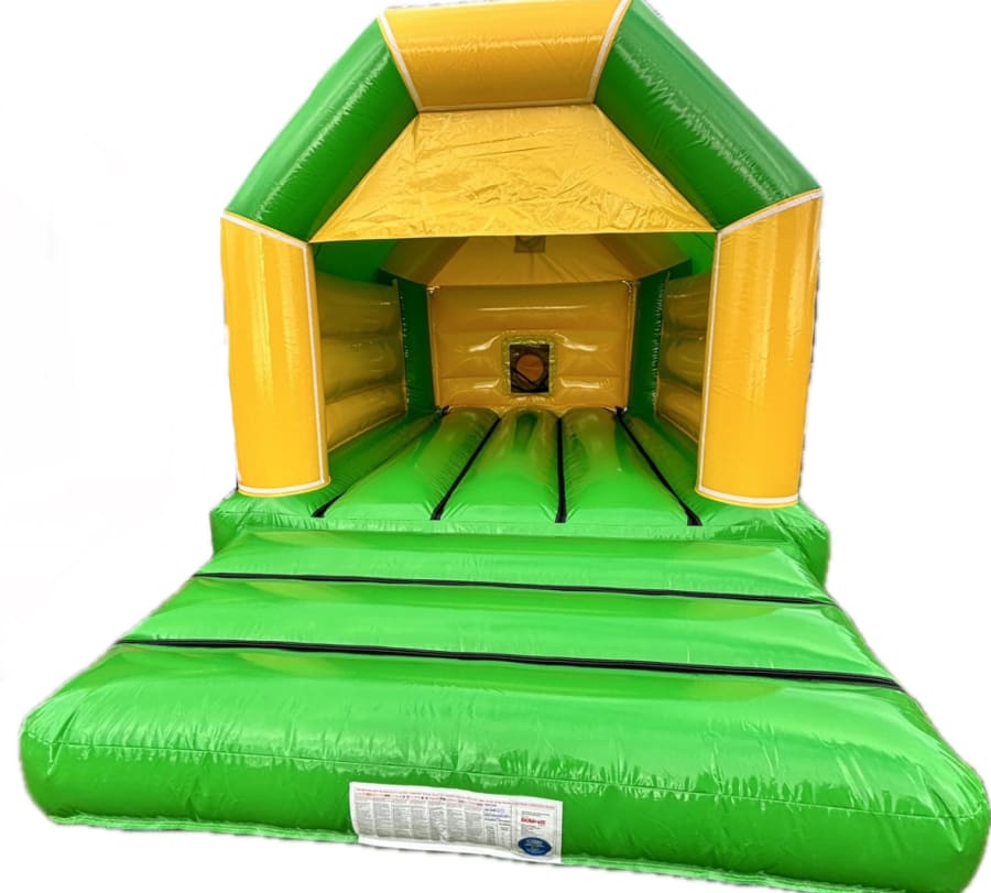 New for 2024. This bright yellow and green bouncy castle is a brand new replacement as of November 2024 for our hugely popular original version. We have gone for shiny gloss material which looks brighter.