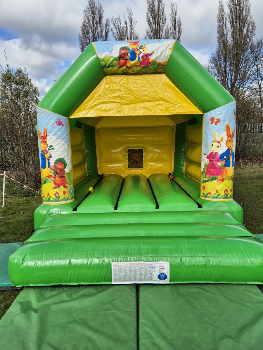 Please note: All bouncy castles must be on grass if outdoors so they can be securely pegged down. They require an electricity supply within 45m to power them. They cannot be used if wind gusts are 24mph+