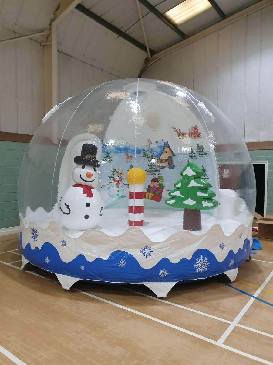 We have just received our fantastic Snow Globe bouncy castle. Its Disco ready therefore it can come with a flashing light inside at the top and a bluetooth speaker to the rear giving you the option to play music or classic Christmas songs.
