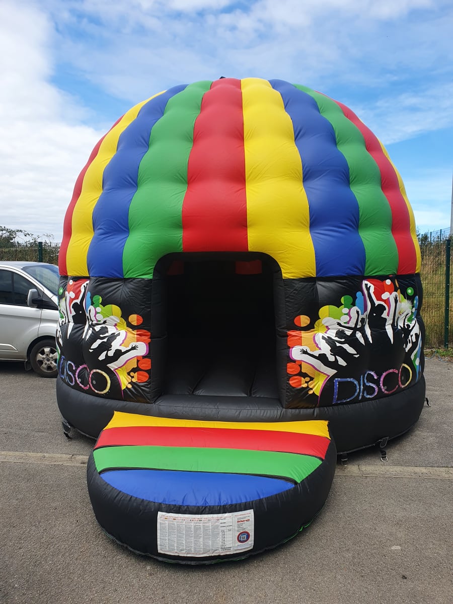The Disco Dome is another great inflatable we just had to have. This unit is 15ft round and dome shaped with an additional 5ft step on the front so takes up an overall floor space of 15ft x 20ft. Height wise it stands at approx 13.5ft TBC!