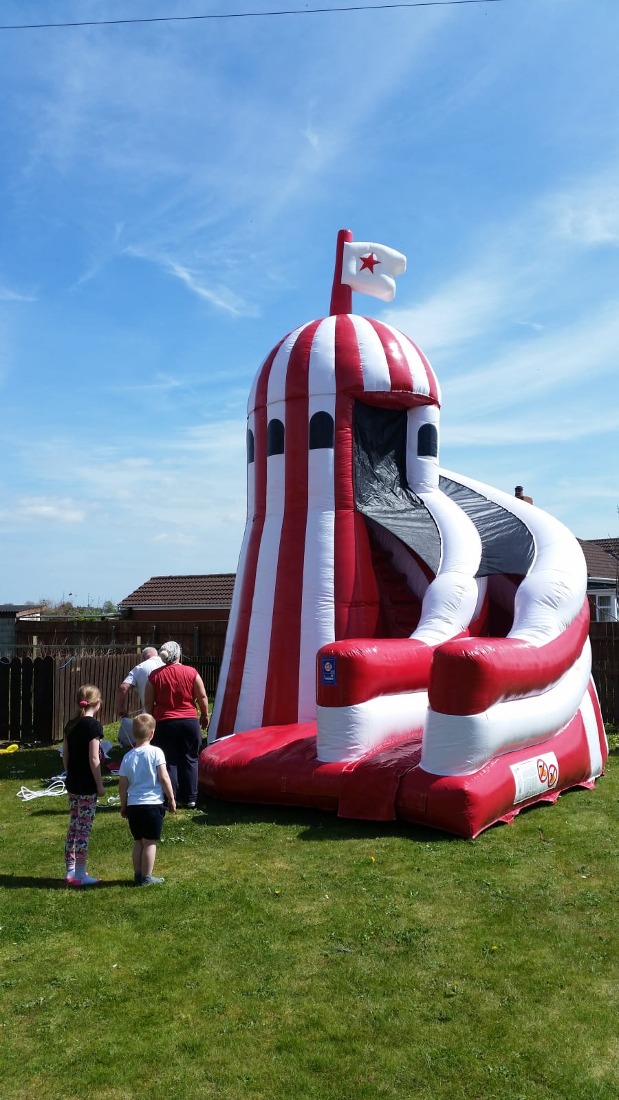 PLEASE NOTE: This is a 200kg bouncy slide that is 1.5 metres tall when rolled up and 3-4ft wide. It will not fit through small gates, ideally we need a 3-4ft wide gate minimum to get it through. We can not barrow this inflatable very far so please make us aware if 20m+