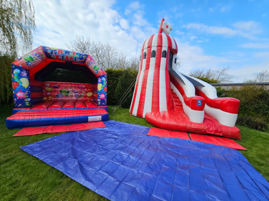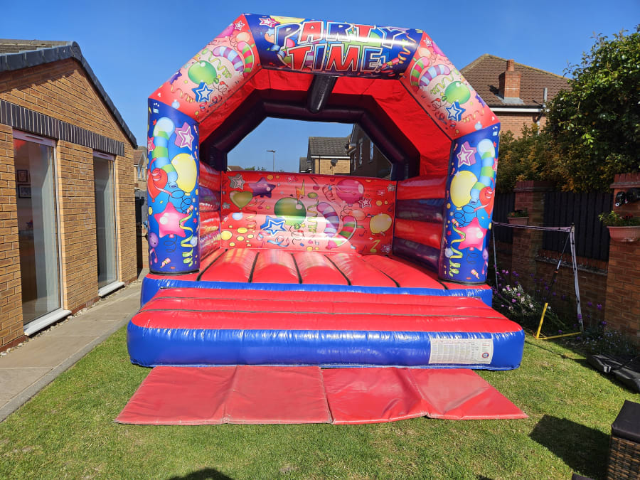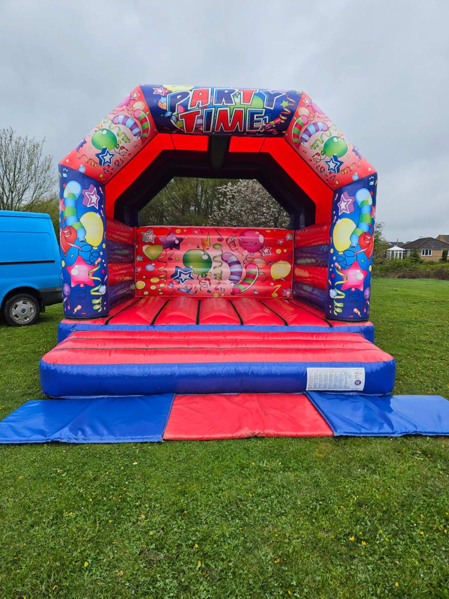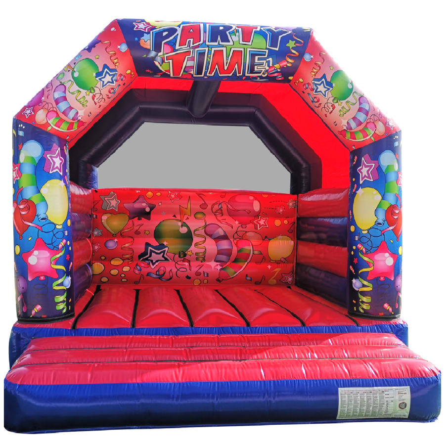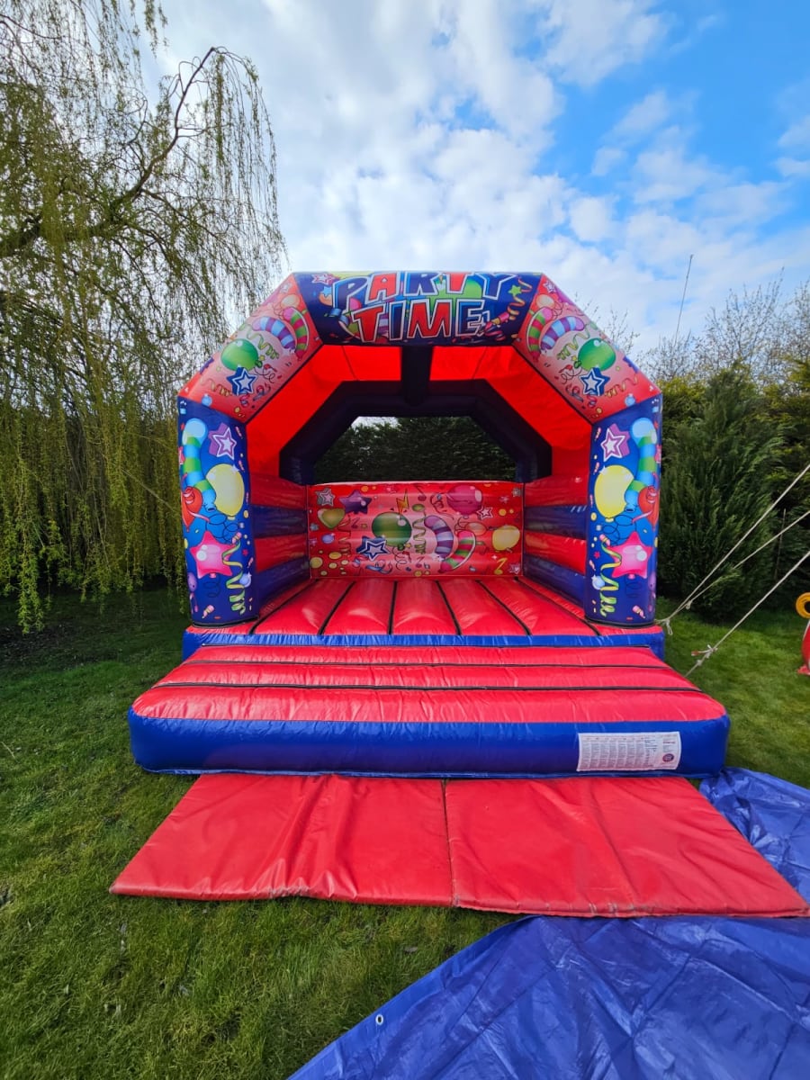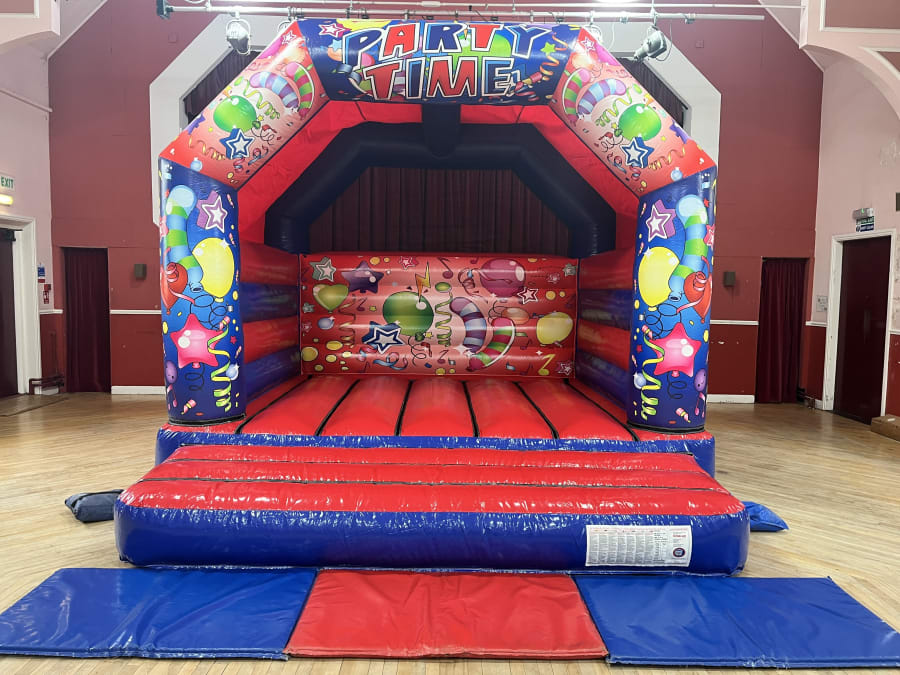 🎉 Get ready to bounce, jump, and laugh as you experience the thrill of this vibrant and eye-catching bouncy castle. With its bright red and blue colours and captivating party time artwork, it's sure to be the centrepiece of any celebration.