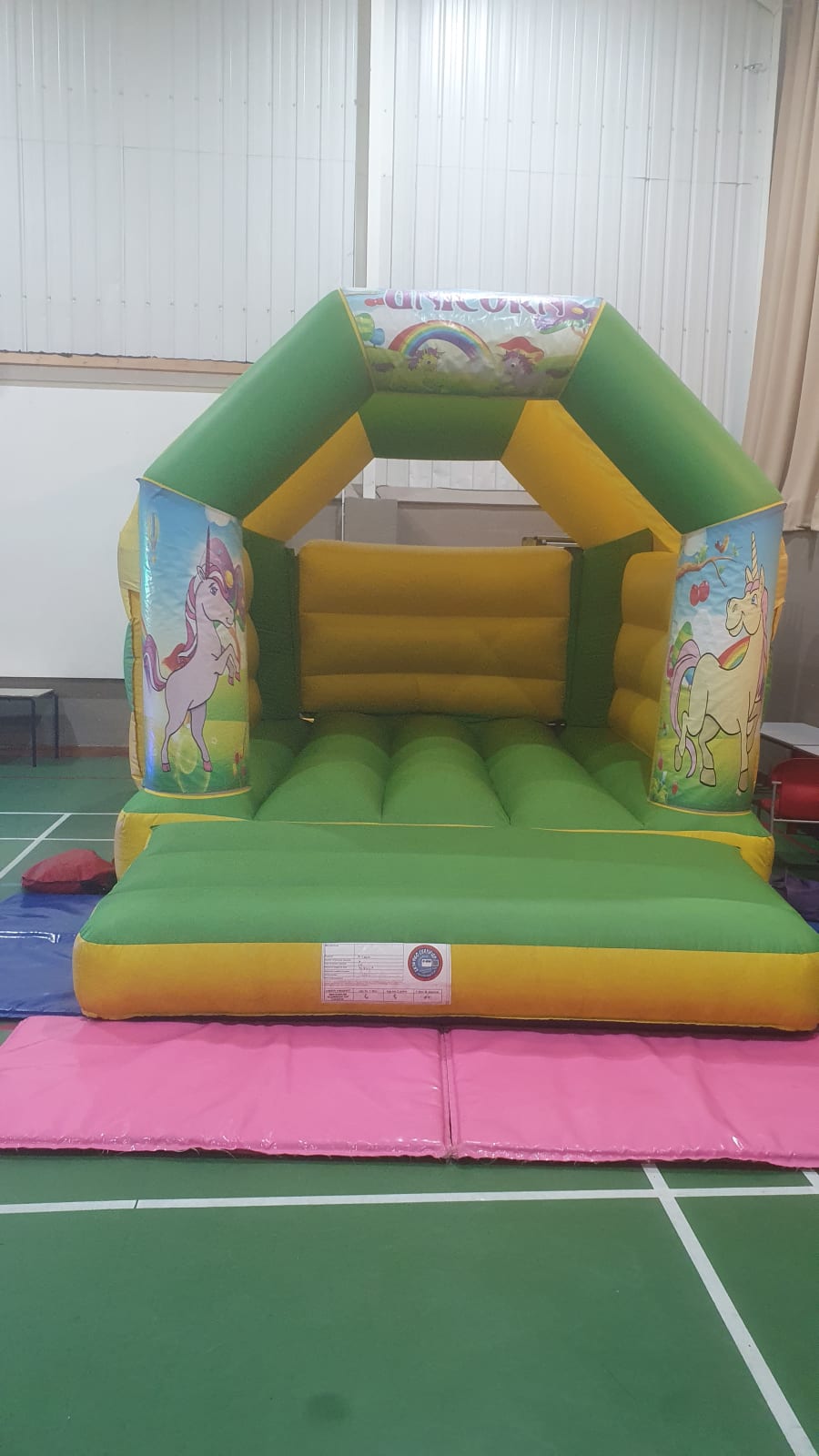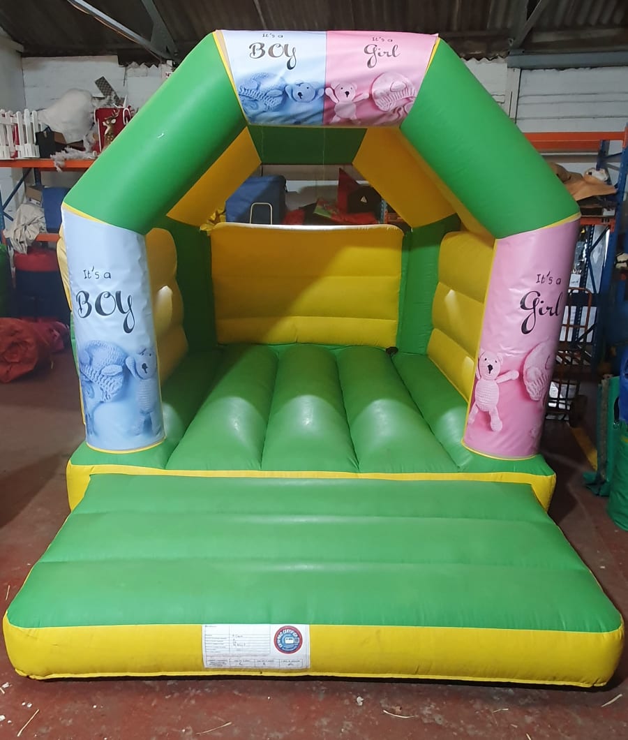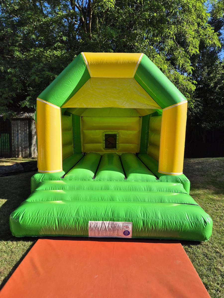 New for 2024. This bright yellow and green bouncy castle is a brand new replacement as of November 2024 for our hugely popular original version. We have gone for shiny gloss material which looks brighter.