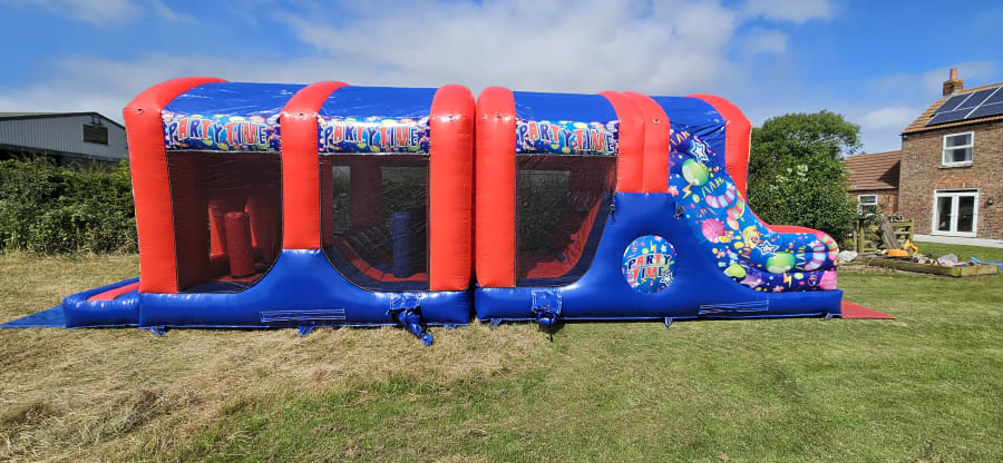 We also offer a new larger 65ft + version of this obstacle course which can be found here >> 65ft Party Time Obstacle Course - New 2025