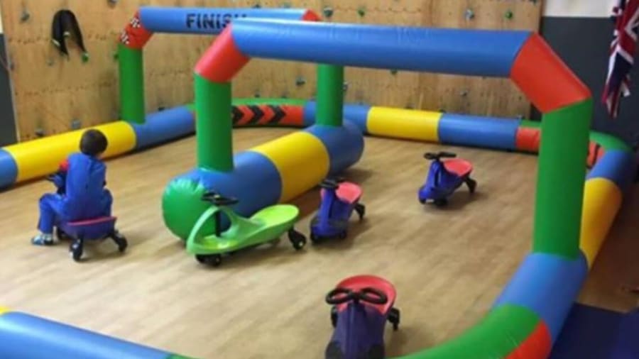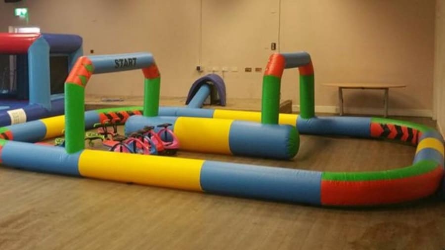 We have now received a new inflatable Track that can be used for a variety of games, measuring 20ft x 16ft it's main use will be indoors using either ride on Wiggle or Didi-cars. This track will also be suitable for fun play races with accessories such as space hoppers, egg and spoon and sacks for sack races, all of which will be available from us under a different package available.