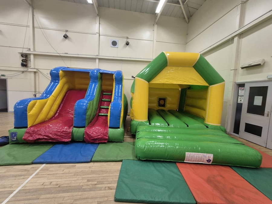 This popular party package includes a garden friendly 11ft x 15ft Bouncy Castle and a junior slide.