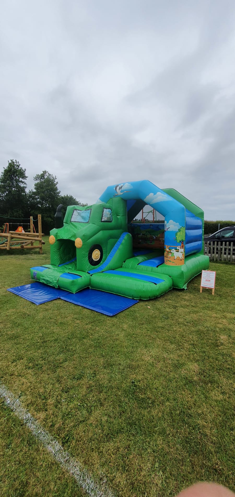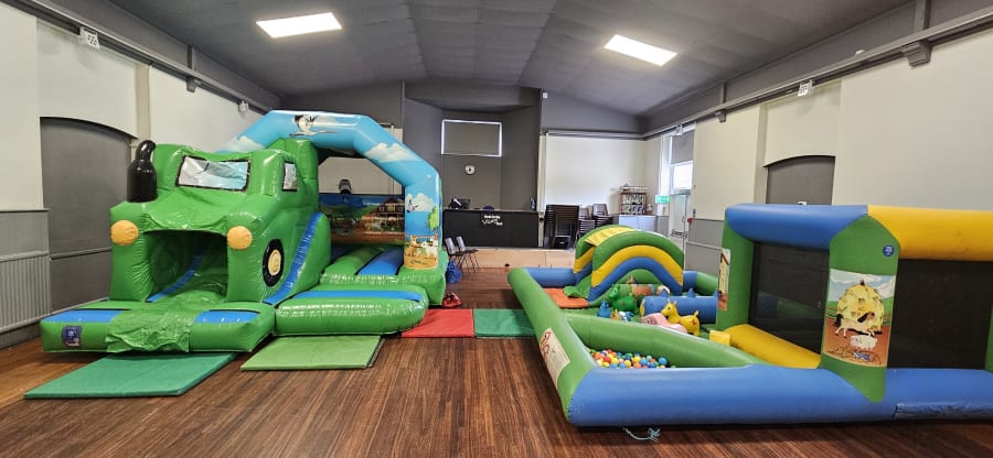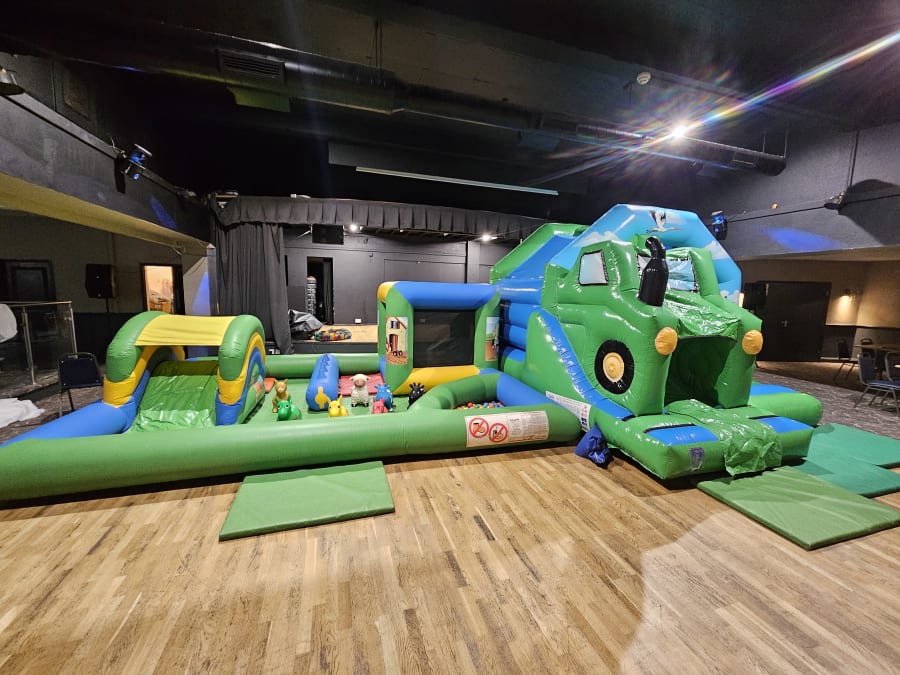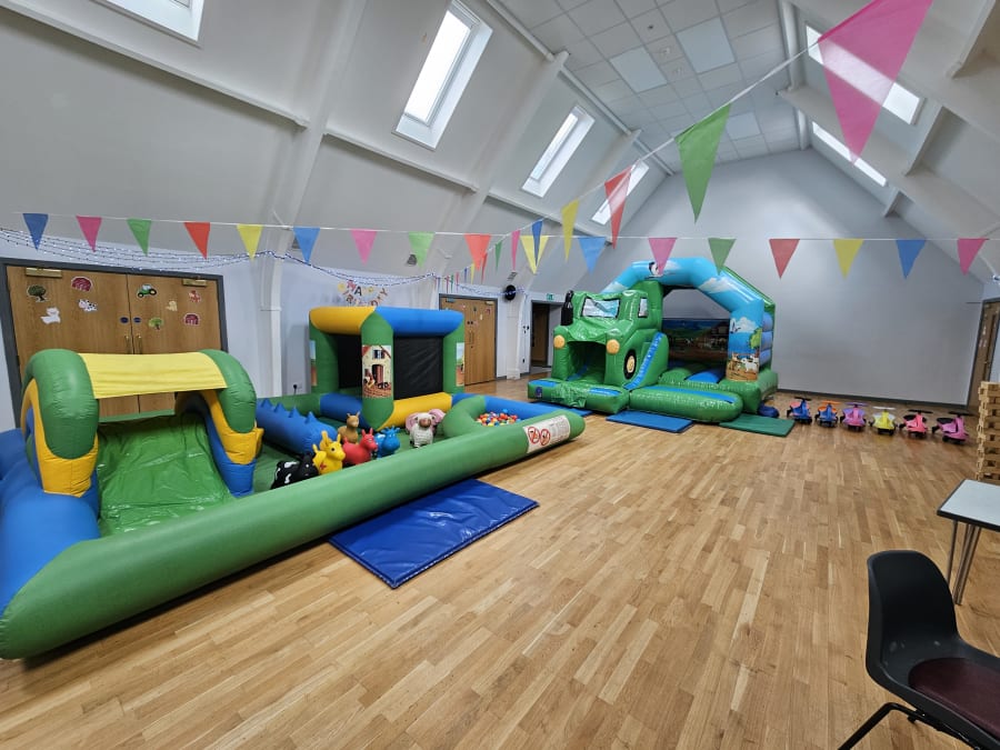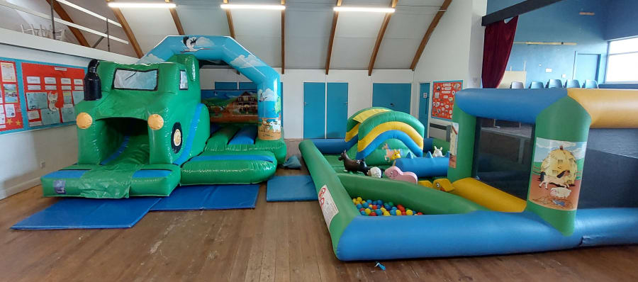 The Tractor soft play is massively popular. It features a farm themed bouncy castle with a tractor slide on the front. Measuring 12ft x 15ft. 9ft 6" tall and has a built in shower cover.